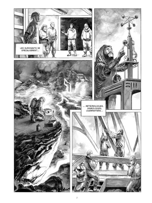 Un cataclysme. Plus de soleil. Plus de vie. L’humanité frôle l’extinction. Les derniers hommes plantent sur le sol carbonisé les fondations de la première tour. Ainsi débute la poussée. Des siècles se sont écoulés et les tours poussent toujours vers le ciel, consommant hommes et matériaux à un rythme effréné. Mais lorsqu’une ingénieure en fuite croise la route d’un contremaître fatigué, tout bascule. Les croyances de cet homme explosent et il n’a plus dès lors qu’un seul but : découvrir l’effroyable vérité sur Vertigéo.