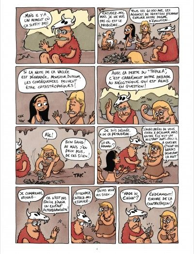 Dans ce 3e album de Silex and the City – Le Néolithique, c’est pas automatique –, on découvre les ancêtres des agences de notation. On tremble face à la concurrence de l’Homme de Pékin. On s’enthousiasme pour « l’évolution du Jasmin » et on manifeste contre les expulsions des espèces défavorisées avec le « Réseau évolution sans frontières ». On invente les réseaux sociaux avec « Flèchebook ». Et quand le volcan explose, le spectre de Fukushima se profile à travers les âges, malgré la communication rassurante d’EDF (Énergie du feu). Serions-nous, comme le prédit le fameux « calendrier lémurien », à la veille de la fin du monde, annoncée pour l’année 40012 avant Jésus-Christ ?